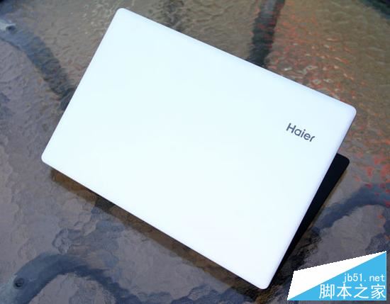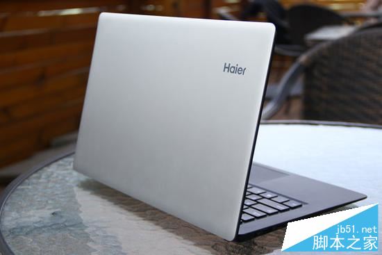 整个笔记本的A面、D面采用了银色磨砂质感的材料,深色的Haier Logo位于A面的右上角,使整个A面显得简洁大方。银色磨砂的外壳在手感舒适的同时也增加了整机的握持感。