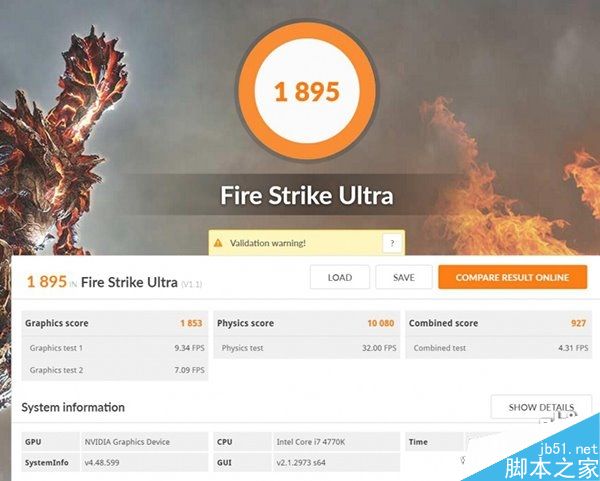 跑分方面(测试驱动仅供参考),GTX 1050 Ti的3DMark Ultra实际跑分为1853分,相当于比Nvidia的非公版GTX 960高出8-10%。因为是4K测试,压榨得太厉害,公版GTX 1080资料得分是5000分,1060桌面版2900分,移动版2500分。