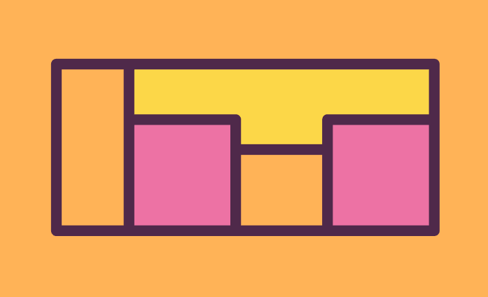 步骤7:相较于上图添加一些细节,添加一个10*12的矩形,填充颜色D3437B,与长矩形居中对齐。再新建一个76*25的矩形放在下面,填充颜色FCD748,上面添加五个8*10的小矩形,填充颜色4F294A。