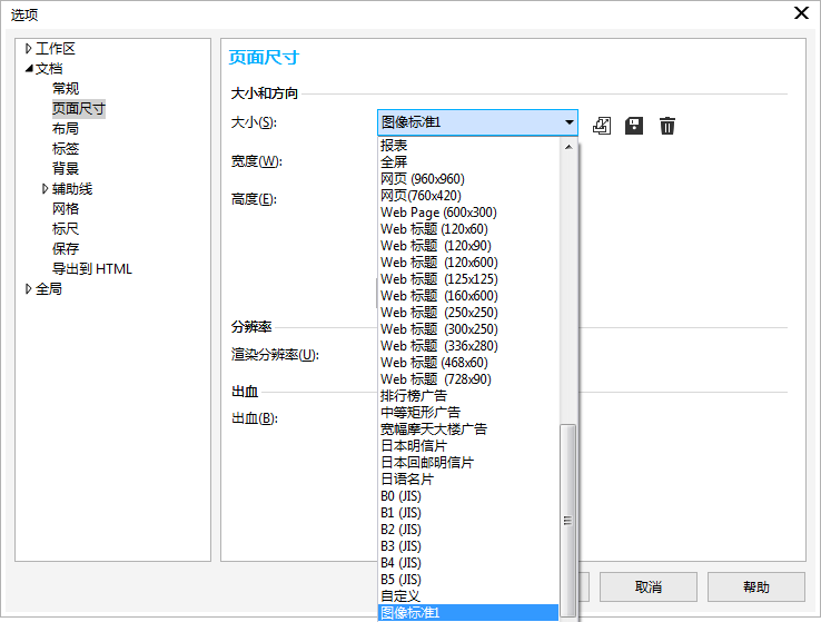 添加自定义预设页面尺寸。