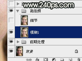 2-4、把细节图层暂时隐藏,选择“模糊1”图层,如下图。