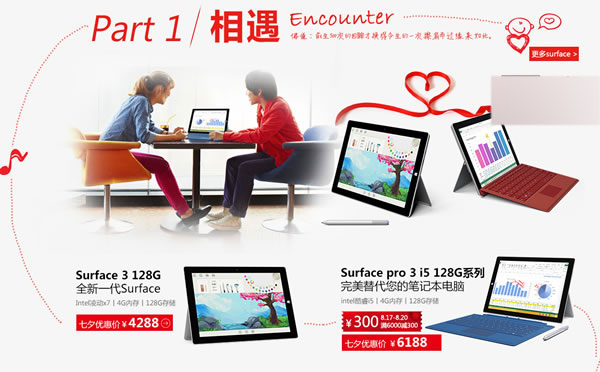 Surface 3直降400元,七夕优惠价4288元:点此下单