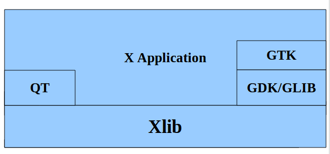 QT是直接使用xlib库的,GTK不能直接使用xlib,而是使用更低层的函数库GDK和Glib。这种结构使得Gtk可以更方便地移植到其它系统上,或使用与XWindows系统无关的图形库。