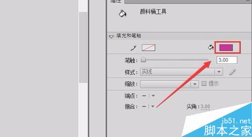 9、再次选择油漆桶在属性里调节填充色为粉红色,给鱼的身体填充上粉红色,如图所示: