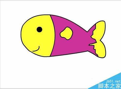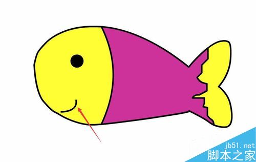 16、用油漆桶给鱼鳍填充上黄色,我们的卡通小鱼就制作完成了,如图所示: