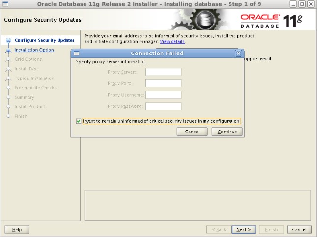图-2 由于我的安装机没连通外网,所以提示我设置代理。选中复选框,点击Continue