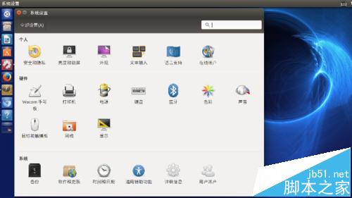方法:点击启动器上的“系统设置”图标,启动“系统设置”窗口。
