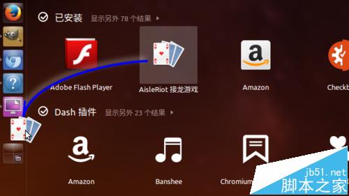 3、查找程序图标,也可以按下 Win + a 组合键,然后在 Dash 的搜索框中输入要查找的程序的关键词,Dash 将会快速显示出相关应用,这时再拖放相应图标就可以了。Dash 的搜索框支持中、英文等多种语言输入。