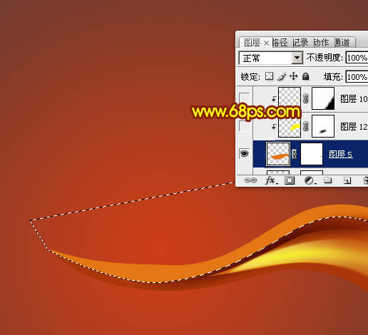 10、新建一个图层,用钢笔勾出下图所示的选区,填充橙红色。