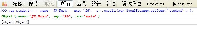假设,我们把一个student对象存储到localStorage中,具体代码如下: