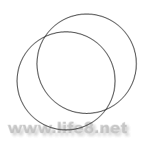 接下来我们画月亮。选择椭圆工具(快捷键为O或者数字3),按住Shift键在画板上单击并拖动,画出两个正圆形。Shift键的作用是强制椭圆为正圆。再选择箭头工具(快捷键为V或者数字0),使用它选择圆形,摆放好两个圆形的相对位置(如图2)。