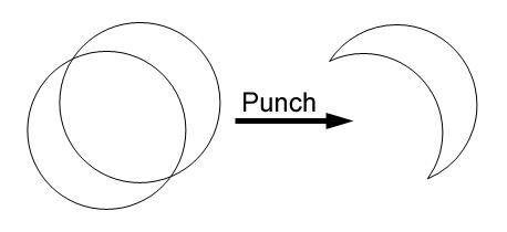 按住Shift键单击选择两个圆形,然后选择菜单命令“Modify→Combine→Punch”,使两个圆进行剪切,得到月牙的形状(如图3)。