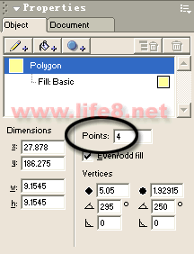 不过,天空中如果都是五角星的话未免显得太单调了,我们将其中几个换成四角星和六角形。选择箭头工具,单击五角星中的一个,然后双击Properties面板的标题栏将其展开,在Object标签下,将Points框内的5改成4(如图6)。