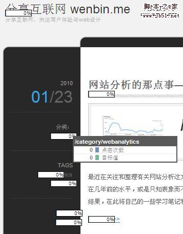 利用Web分析工具中的这一功能,可以显示内嵌在网页上的标准链接产生的点击次数。如Google Analytics的“内容”一栏中的“网站覆盖图”功能。通过这个功能可以帮助我们看到访客是如何使用我们的网站的,他们是否点击了我们希望他点击的内容。如果没有,那么他们觉得什么更有意思,更有用,我们能从中获得哪些启发,产生哪些新的价值转换点?