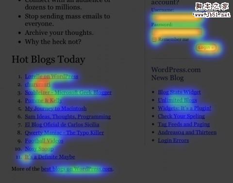 与此类似的工具还有“热点图”工具,这个工具最早是由Crazy Egg所开发出来的。与“网站覆盖图”不同的是“热点图”则记录了页面中用户所累积的鼠标点击行为轨迹,可以精确地监控访客的鼠标是如何点击页面元素的。因此,这对于分析关键页面如:网站首页,Landing Page时配合Google Analytics则能更好地观察访客的行为。