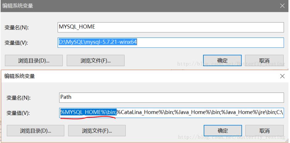 2.配置mysql的环境变量,创建MYSQL_HOME,并且在Path添加上%MYSQL_HOME%\bin;