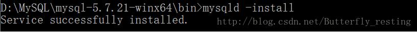 5.再输入mysqld --install,如果出现Service successfully installed 说明注册成功了。