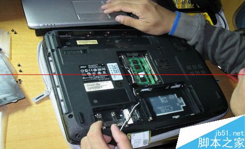 1、先拆开电脑后盖,拿下电池,无线,硬盘等