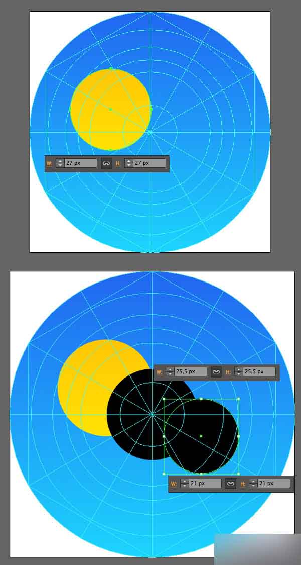 添加一个更小的深橘色 (#e45221)圆并且藏在球形形状的后面,给予更多的对比。
