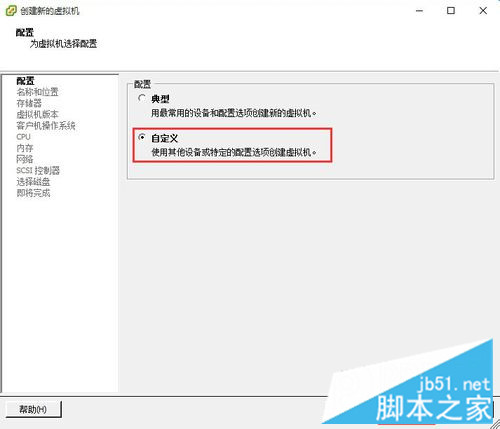 在弹出来的“创建新的虚拟机”窗口中在配置选项中选择“自定义”选项,然后点击“下一步”按钮。