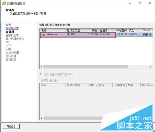 进入“存储器”界面,选择虚拟机文件的目标存储位置,如果有多个位置可以自由选择,然后点击“下一步”按钮。