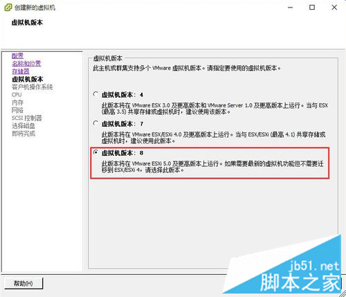 进入“虚拟机版本”界面,选择虚拟机版本,一般都选择最高版本,如果是有特殊需求或兼容可以选择其它版本,然后点击“下一步”按钮。