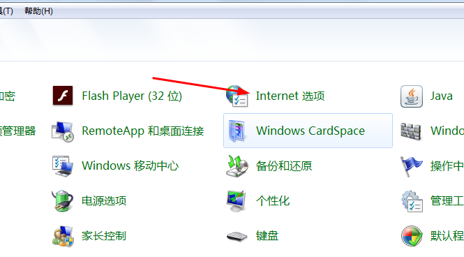 2、然后进入控制面板的界面,在计算机调整的设置,找到Internet选项,如图所示