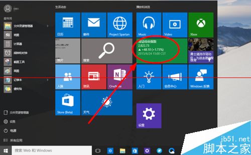2、进入开始菜单界面,选择一个想要关闭动态磁贴的应用,本文以财经应用为例