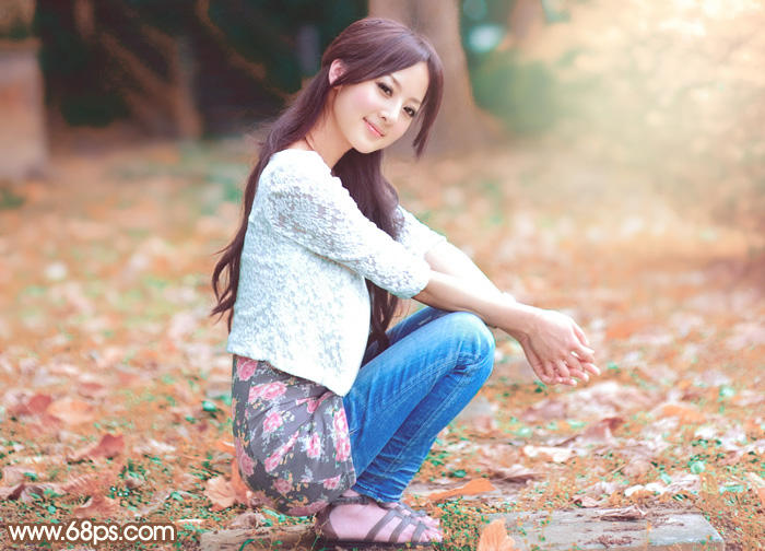 素材图片基本上都是绿色,转为暖色的时候不需要把所有颜色都转为暖色,可以保留小块的绿色,这样画面颜色就不会单调,并有层次感。
