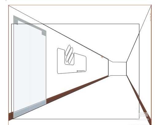 9、这样做的图就不回看起来不协调了。下面要进行一写细节的处理,在填色上也要注意一下墙体 我这里的填色是C2 M0 Y0 K3。只是填色是远远不够的,太假了。因为一面墙不可能就一个颜色,灯光,墙高,等很多因素决定着这些,可我们用渐变又无法做到这样的效果。只有用交互式透明来做,用同样的方法也可以做其他几面,天花板两边都要做这样的效果,而地板上就不用了
