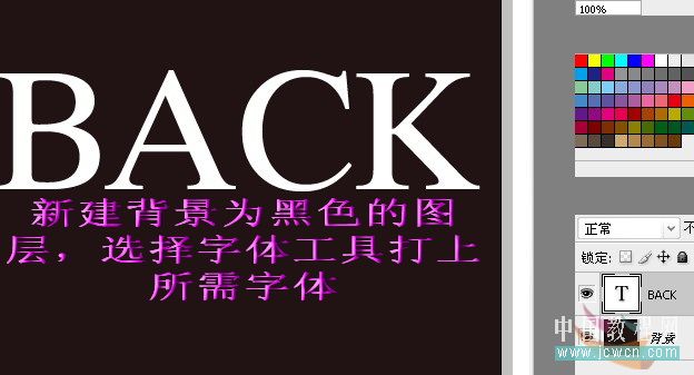 1、新建一个600 * 600像素的文档,背景填充黑色。选择文字工具打上自己喜欢的文字,字体颜色为白色。后期火焰部分的制作会复杂一点,文字最好选择简单一点的。