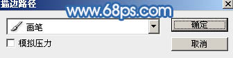 14、选择钢笔工具,在路径上面右键选择“描边路径”,在弹出的对话框选择“画笔”,如图22,确定后按回车隐藏路径,如图23。