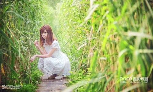 而回到最开始,用最简单的方法,找到可以做前景并能延伸的地方就能出到层次。简单说,把人物放在中景,靠前景的虚化和延伸,背景能迁就到越远就越能虚化。就像这图,右边和左边其实是一坨花墙还是用啥来形容,而拍摄的时候稍微侧一点,那么延伸效果就出来了,这图缺陷是左上方有东西,没有直接拍到通去后面更远地方的视感。而右下方的前景却是很成功的起到了虚化和达到制造层次的效果。