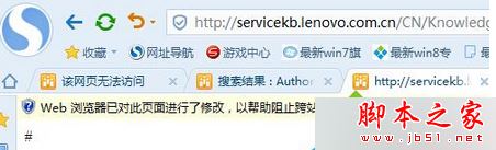 win8使用搜狗浏览器打开网页时提示“WEB浏览器已对此页面进行了修改,以帮助跨站脚本”,具体问题现象如下所示: