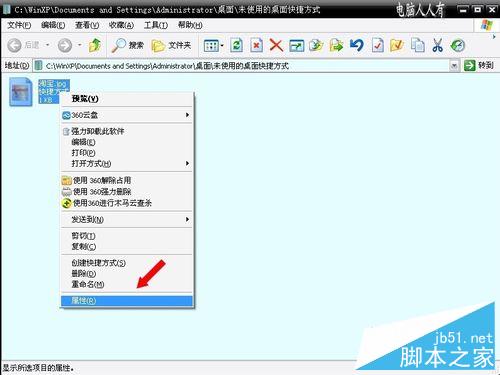 8、打开未使用的桌面快捷方式文件夹,右键点击假淘宝图标,在弹出的菜单中有属性,可以看到其真实的文件名和源程序的路径(不同的图标不同的名称):
