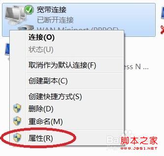 选择一个网络连接,如果是宽带连接的话就选宽带连接,如果是无线连接的话就选择无线连接的属性,看下图: