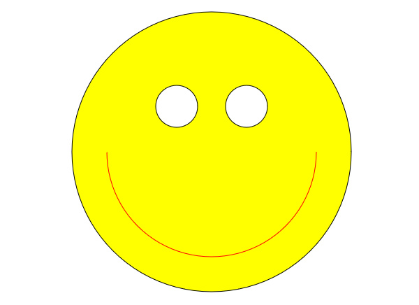 尽管关闭路径不是脚本的功能所必须的,但我们还是需要关闭路径,这样就可以开始绘制笑脸中新的眼睛和嘴。眼睛可以通过同样的方式完成,每个眼睛需要较小的半径和不同的位置。但首先我们必须记住设置填充颜色为白色。