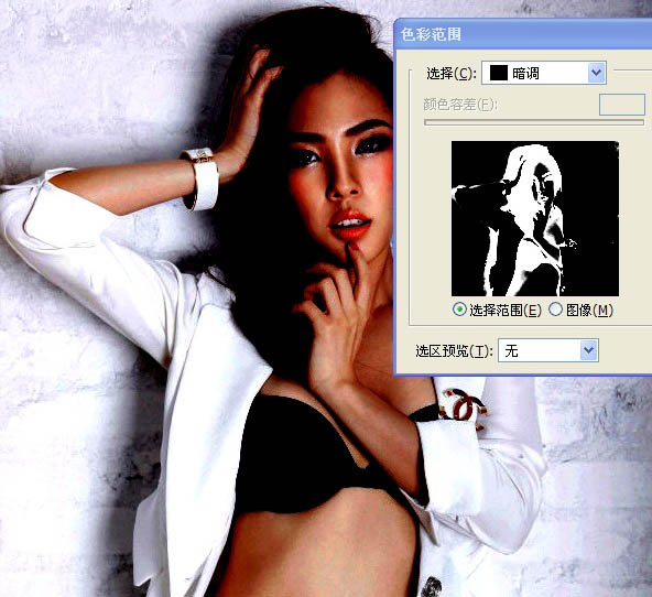 3、设置色彩范围(选择 > 色彩范围),选择暗调,确定后新建一个图层填充黑色。
