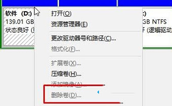 win10磁盘上的“删除卷”按钮是灰色无法删除的解决方法如下: