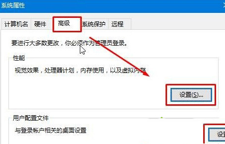 2、切换到【高级】选项卡,点击【性能】下的“设置”按钮;