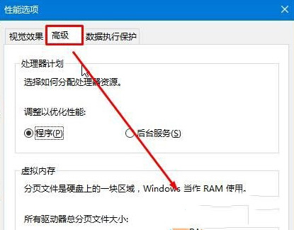 3、在【性能选项】界面切换到“高级”选项卡,点击虚拟内存下的“更改”按钮;
