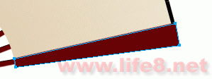 将矩形与圆同时选中后使用“修改—结合—联合”命令,从而形成一个组合路径。然后按图05般,把原来矩形和圆交汇处的两个节点用“部分选择”工具进行点选后按Delete键删除。这样,一个扇骨的外形就显示出来了。