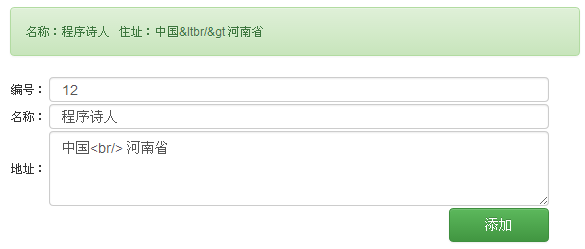我们可以清楚的看到,输入结果,输出后,一对尖角号被转义了。
