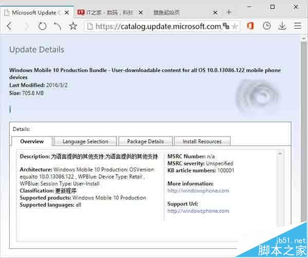 从图中的修改日期可知,该更新于今日被上传到服务中,完整ROM安装包大小为705.8MB,显示版本为10.0.13086.122。微软今天刚刚向Win10 PC用户推送了10586.122更新,如果手机版推送成行,用户最快会在本周获得更新。