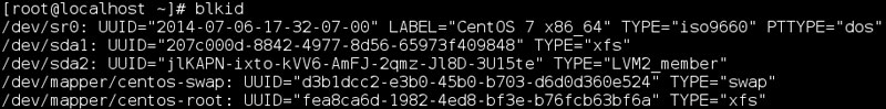 blkid 命令是一个命令行工具,它可以显示关于可用块设备的信息。它可以识别一个块设备内容的类型(如文件系统、交换区)以及从内容的元数据(如卷标或 UUID 字段)中获取属性(如 tokens 和键值对)。它主要有两类作用:用指定的键值对搜索一个设备,或是显示一个或多个设备的键值对。