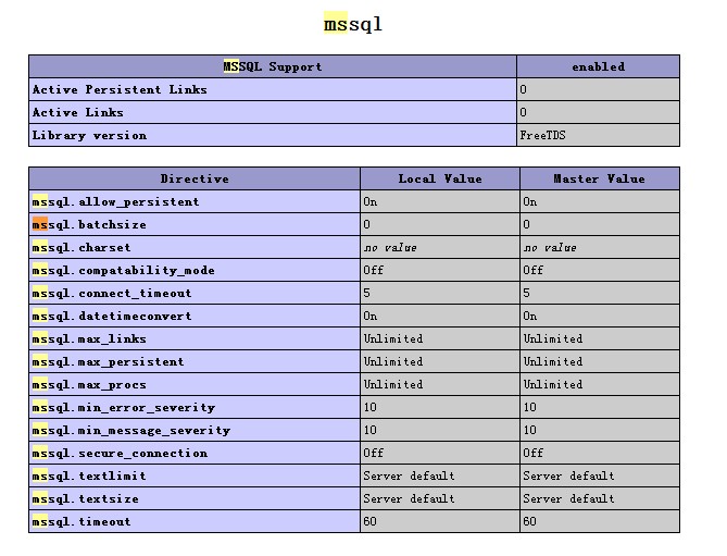 显示有如下测试页面内容, mssql.so模块即在PHP下加载成功。