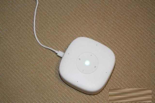 整个小爱音箱mini版的造型与上一代完全“脱节”,第一眼看上去有点像电视盒子,高度只有50mm,整个四周也只有mi的LOGO和背部的MicroUSB电源接口。