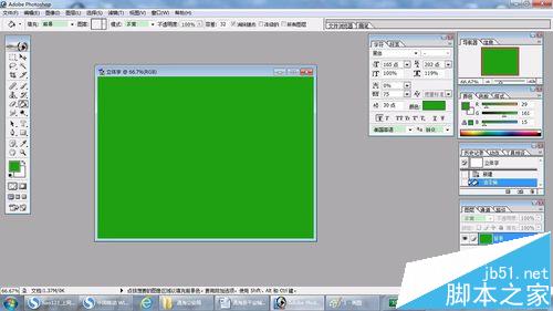 2、为了后期字体效果,我这里改变下背景颜色,可以后期起到存托作用,先把前景色选择为绿色(自定),然后选择油漆桶工具,并对背景填充。