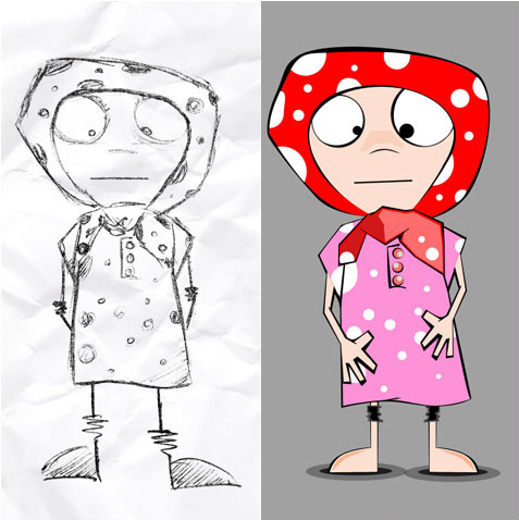 我在此提醒一下初学者,你如果有什么想做的东西,首先画草图。画画是表现你的思想的最直接方式。我开始画我的角色了,不过我还是只会画圆。然后把它们涂上不同的颜色。(图01)