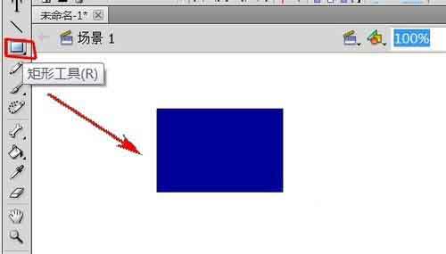3、在工具栏里选择“矩形工具”,利用“矩形工具”在舞台上绘制一个矩形。